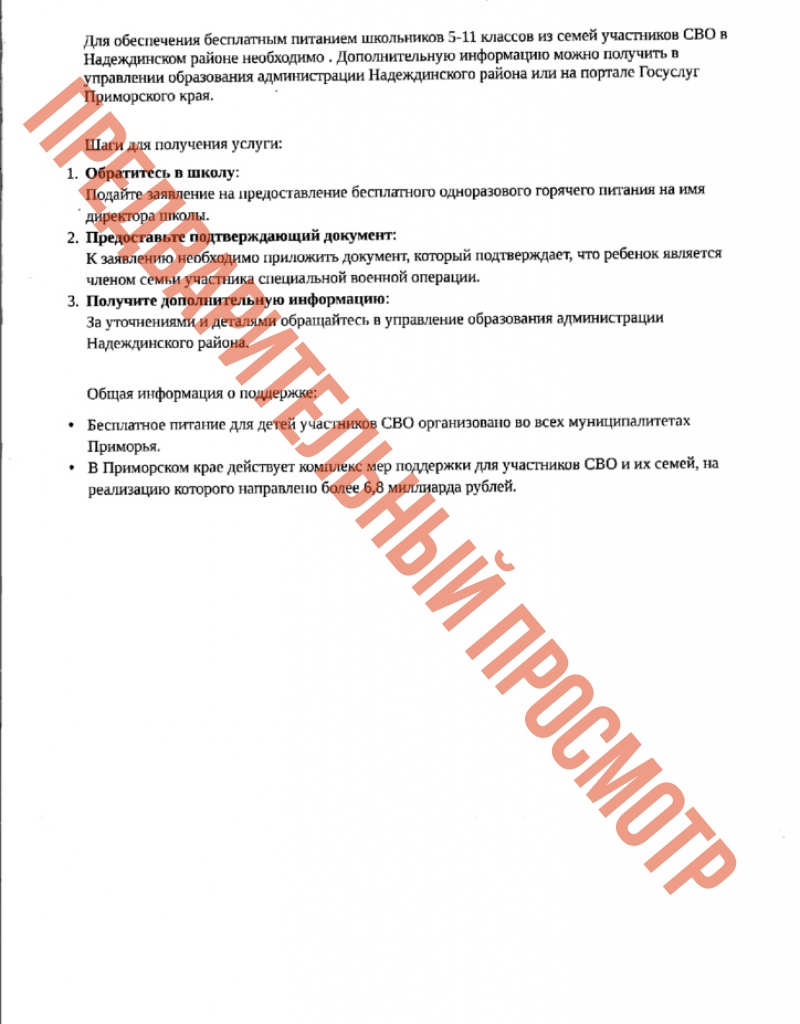 Обеспечение бесплатным питанием школьников 5-11 классов из семей СВО