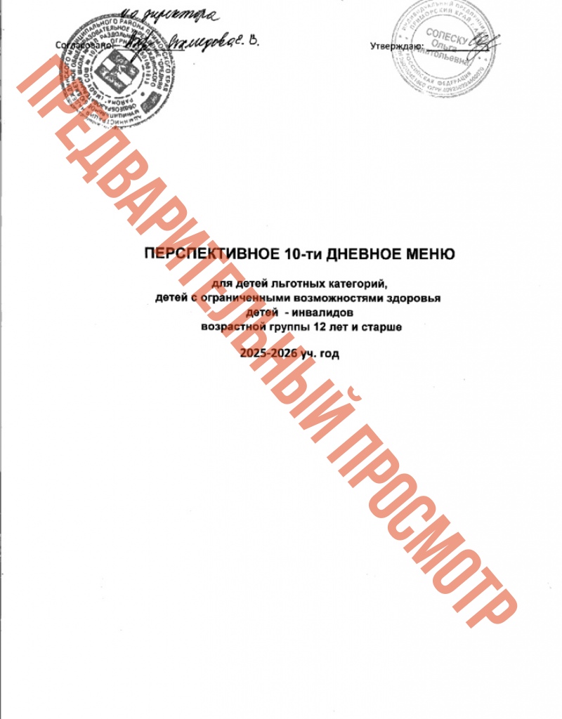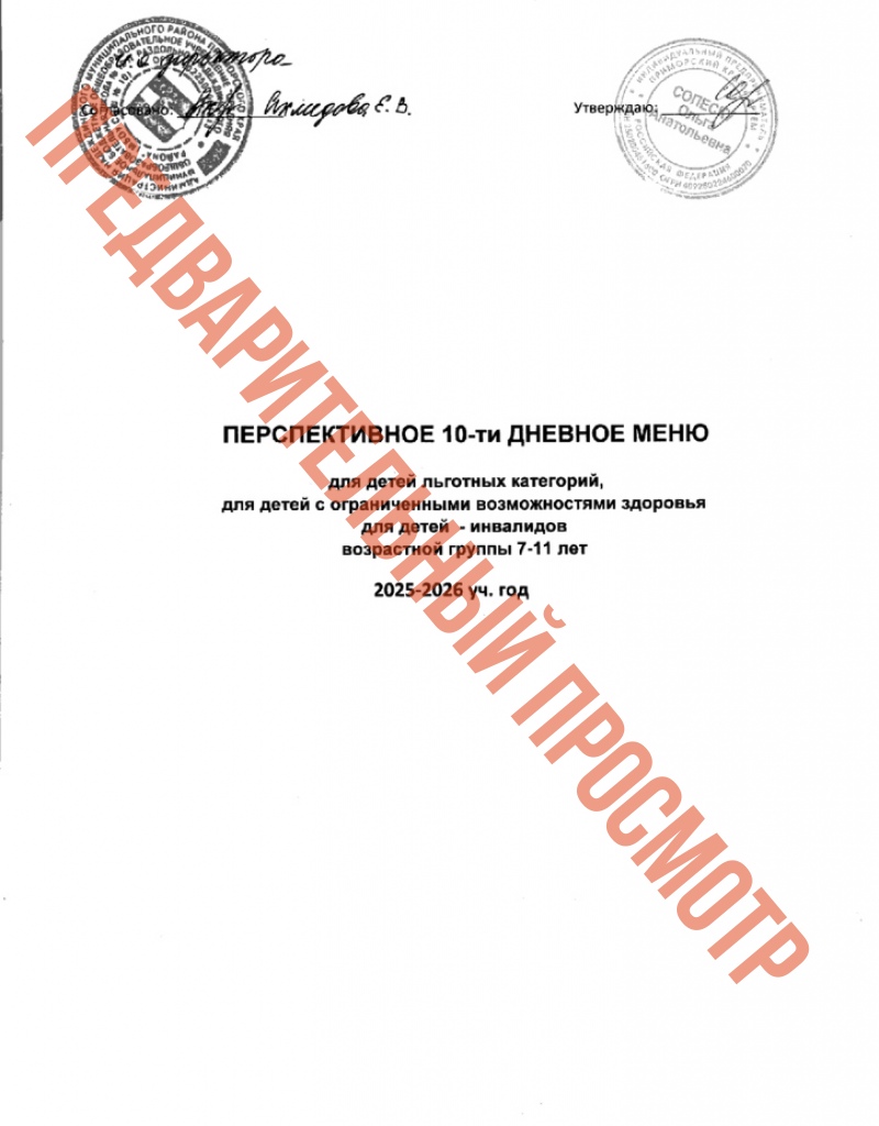 Перспективное 10 дневное меню дети-инвалиды 7-11 лет