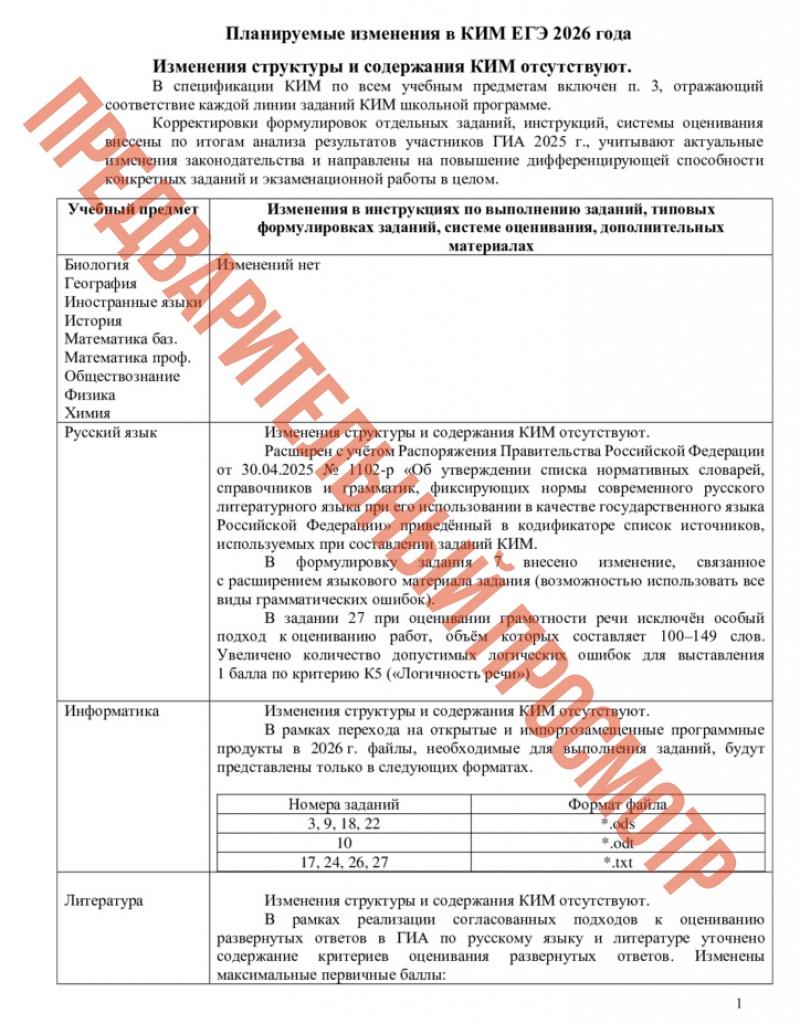 Изменения в КИМ ЕГЭ на 2025-2026 учебный год.